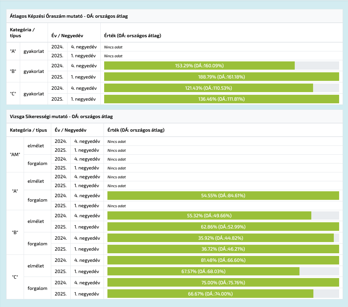 Járműkezelés:       10 óra 6 óra  4 óra 4 óra 2 óra